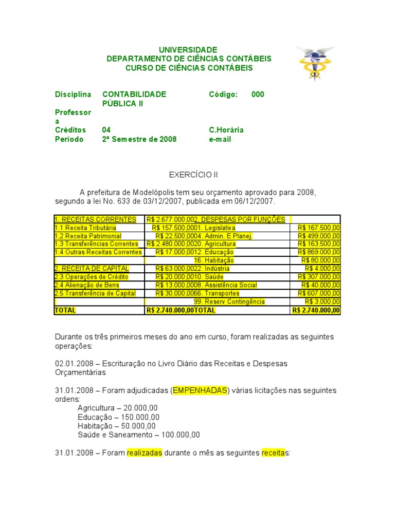 ExercÃcio De Contabilidade Pública - Source